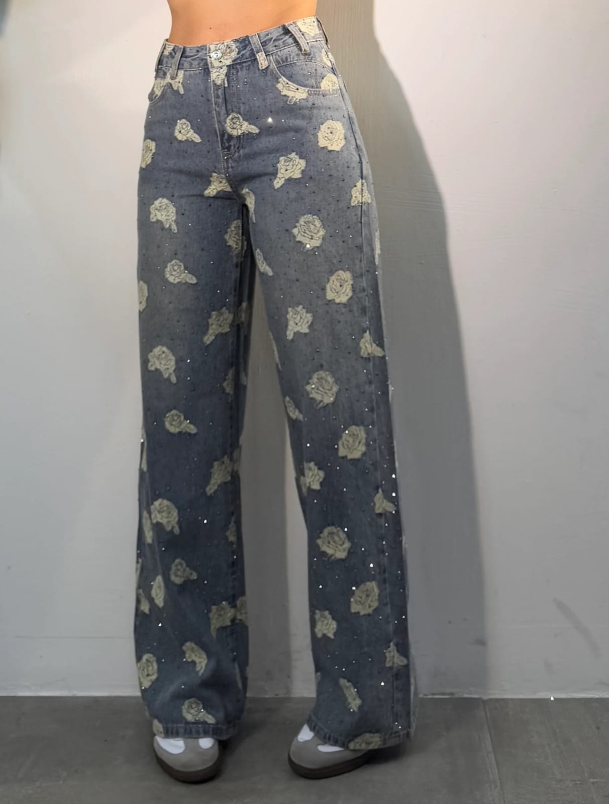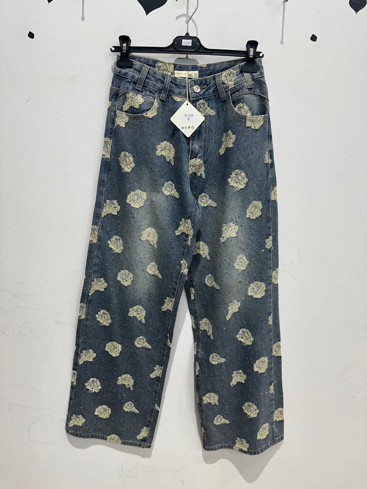 IL JEANS DEL MOMENTO CON STRASS E ROSE ULTIMI PEZZI TG M